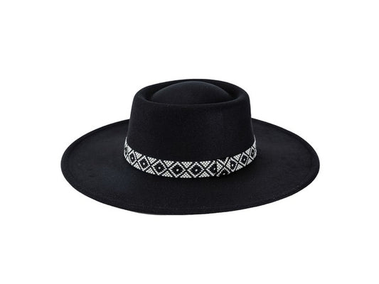 FLAT TOP FELT FEDORA WITH BOHO BAND