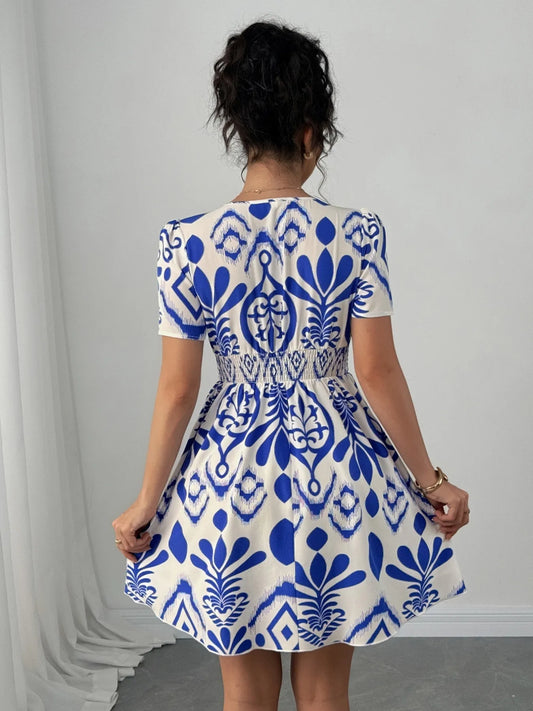 Lace Detail Printed Three-Quarter Sleeve Dress