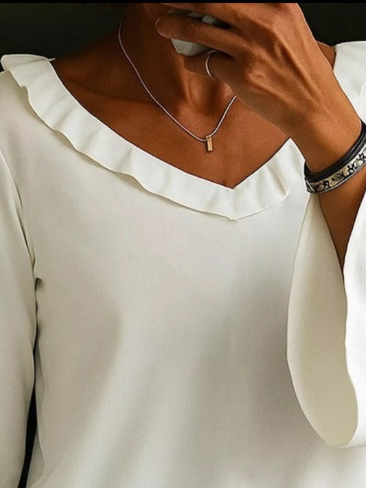 Full Size Ruffled V-Neck Long Sleeve Blouse Plus Size